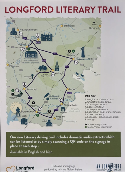 You can explore the trail by scanning a QR code at each stop or you can simply search for the Longford Literary Trail on your music app where you can access the full listening collection.